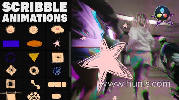 DR达芬奇模板-手绘卡通抽象过渡和多彩涂鸦元素工程文件下载