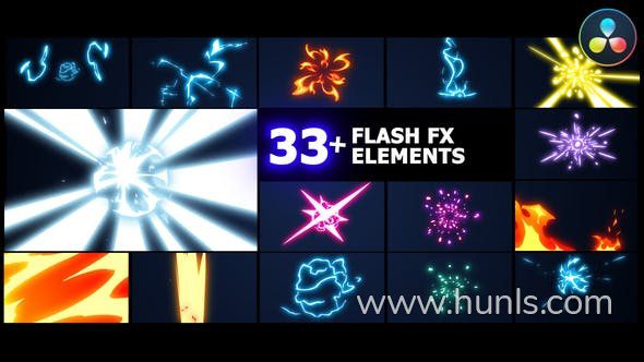 DR达芬奇模板-能量爆炸火焰电力闪光烟雾Flash FX 元素包动作短片视频特效工程文件下载