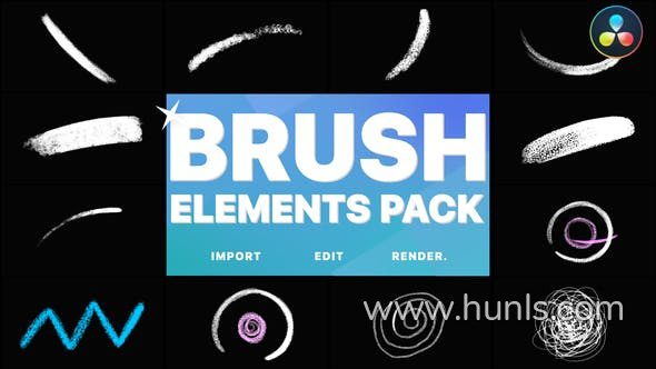 DR达芬奇模板-系列画笔元素卡通漫画艺术涂鸦游戏线条划痕效果视频广告工程文件下载