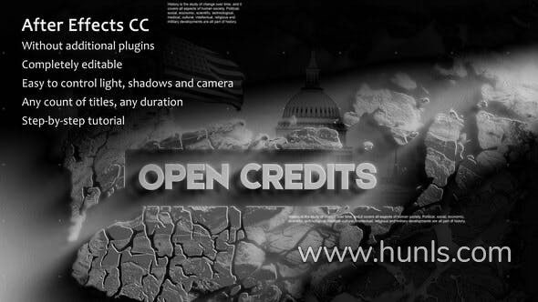 AE模板-黑白阴影效果历史调查事件电影片尾字幕标题预告片工程文件下载