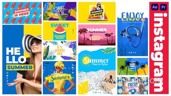 AE模板-暑假潜水健身游泳培训广告宣传清凉夏日阳光沙滩竖屏海报工程文件下载