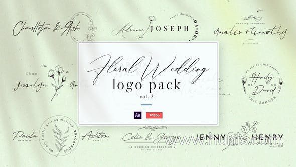 AE模板-10个波西米亚风精美花卉元素婚礼标志新郎新娘名字婚礼徽章标题工程文件下载