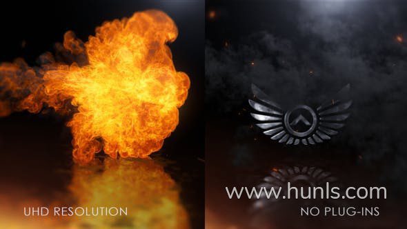 AE模板-火焰和烟雾环境揭示钢铁材质金属纹理标志反射文字动画工程文件下载