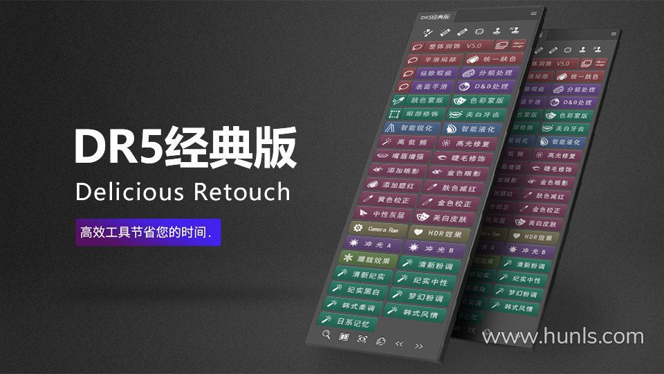 DR5全名Delicious Retouch 5 是一款优秀的Photoshop人像修图磨皮美容插件,插件中包含多种适用于人像修饰的功能,可以快速进行人像美容修饰,适用于影楼快速美容磨皮以及摄影师人像后期处理等方面。