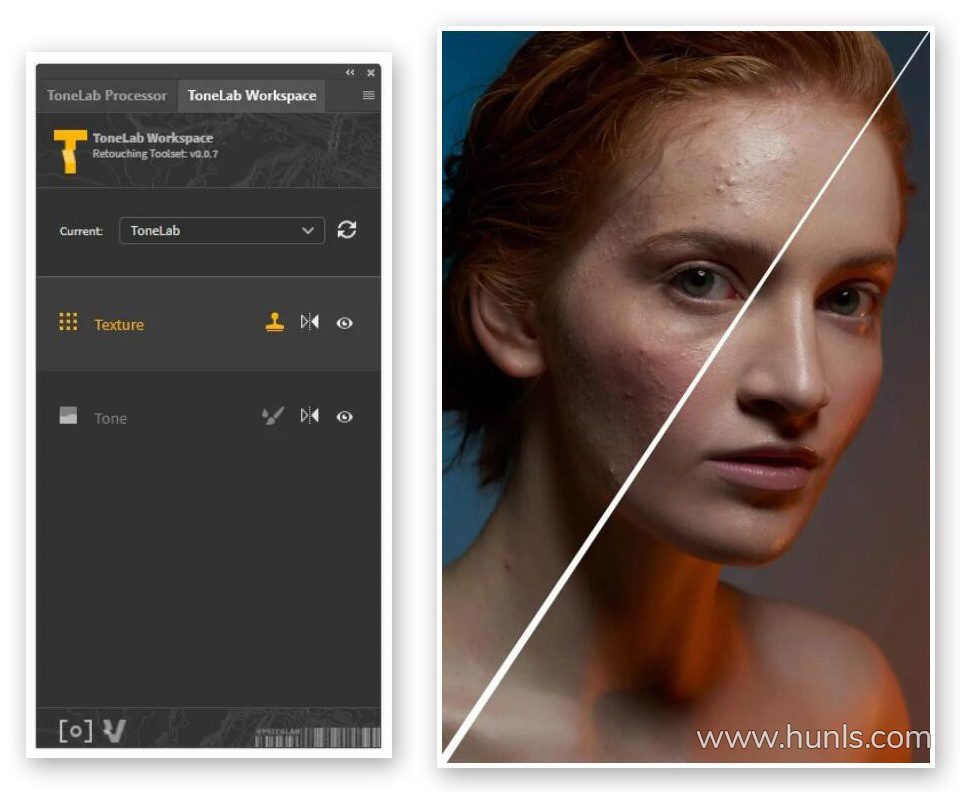 ToneLab 包括一个自定义工具预设包,包括特殊的纹理增强色调画笔,可消除在传统频率分离中破坏肤色的最常见错误。