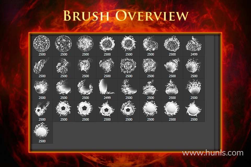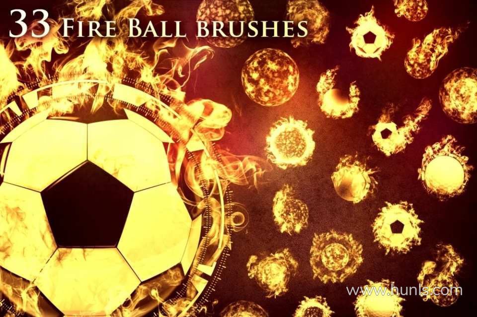 【PS笔刷】33个魔法火球太阳燃烧星球爆炸PS笔刷Affinity画笔Procreate笔刷 33 Fireball Brushes