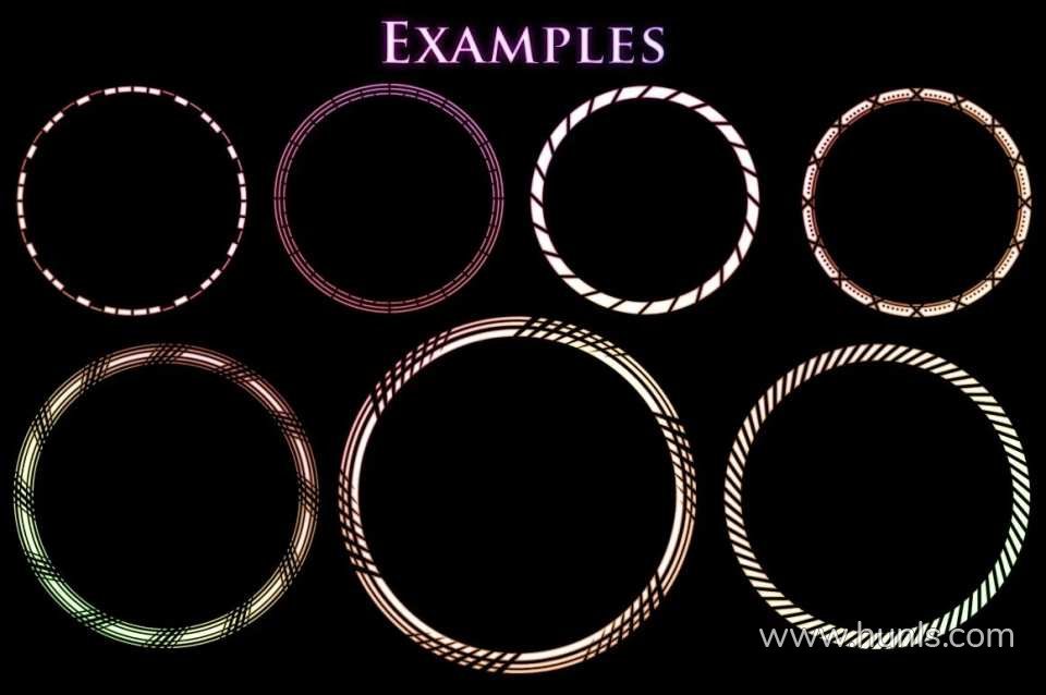【PS笔刷】198种简单的未来派圆形圆环图案PS笔刷Affinity画笔Procreate笔刷 198 Simple Futuristic Circle Brushes
