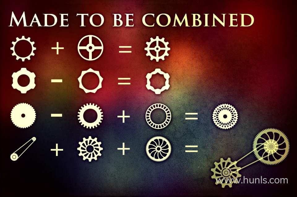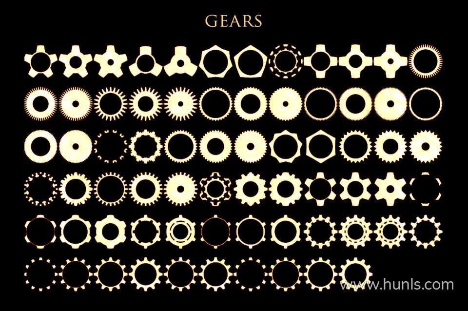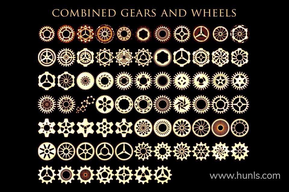 70 种齿轮和轮子的组合(笔刷,PNG)