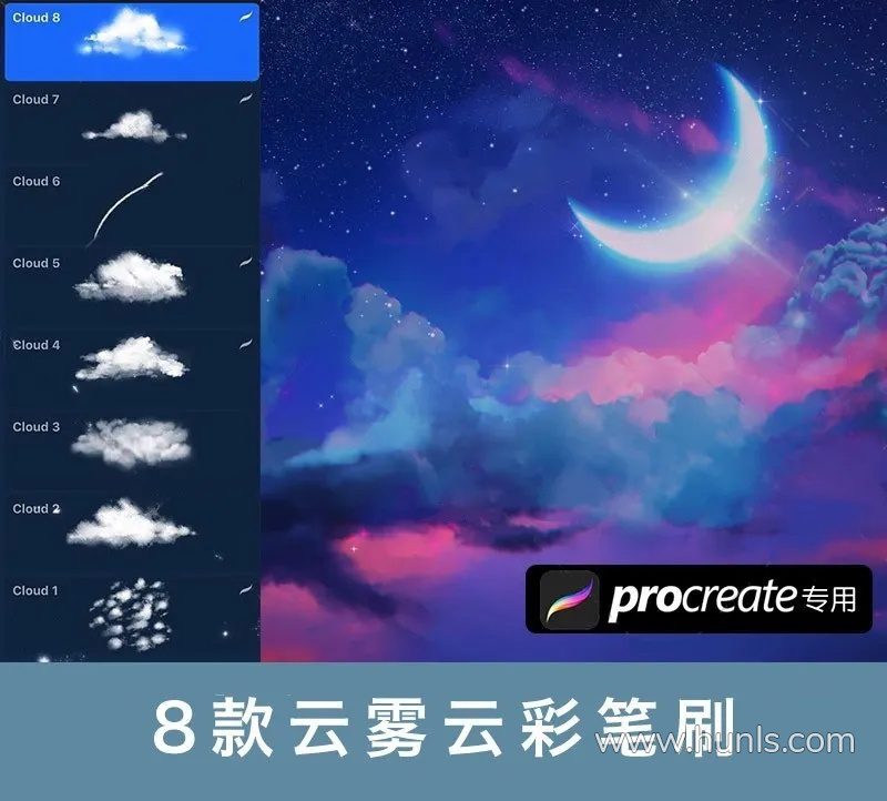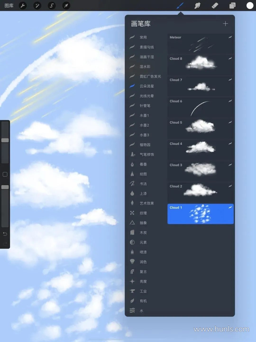 【Procreate笔刷】精选5套超实用的Ipad Procreate笔刷 云朵云雾流星/山峰山脉笔刷/水彩水润笔刷/噪点阴影纹理笔刷/动漫马克水彩笔刷