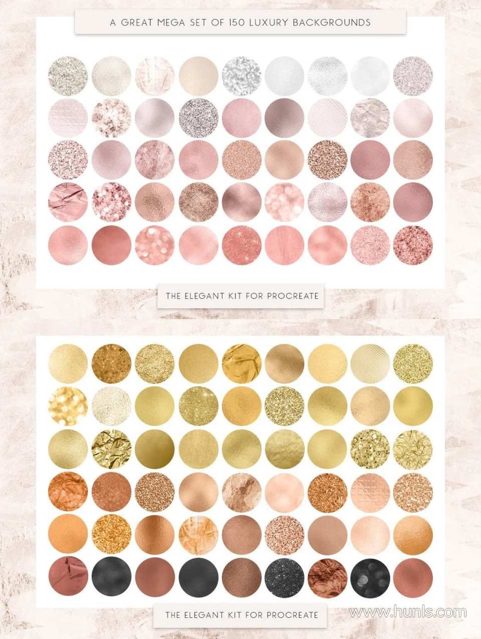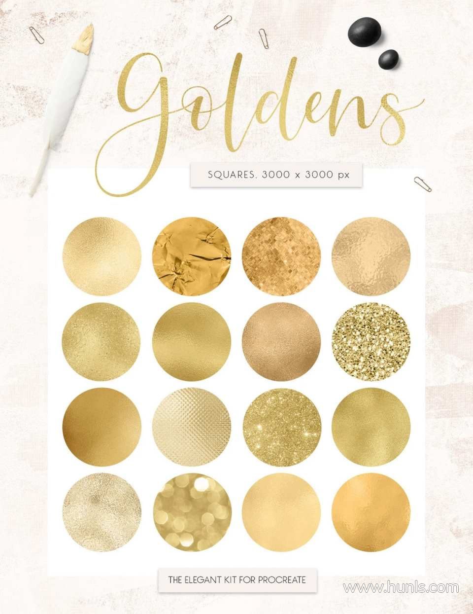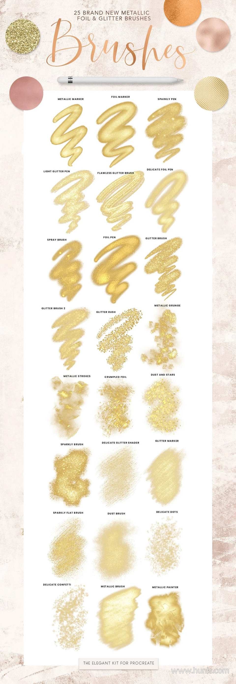 5款金箔金粉笔刷+150张金箔素材,PS跟iPad版本都有!