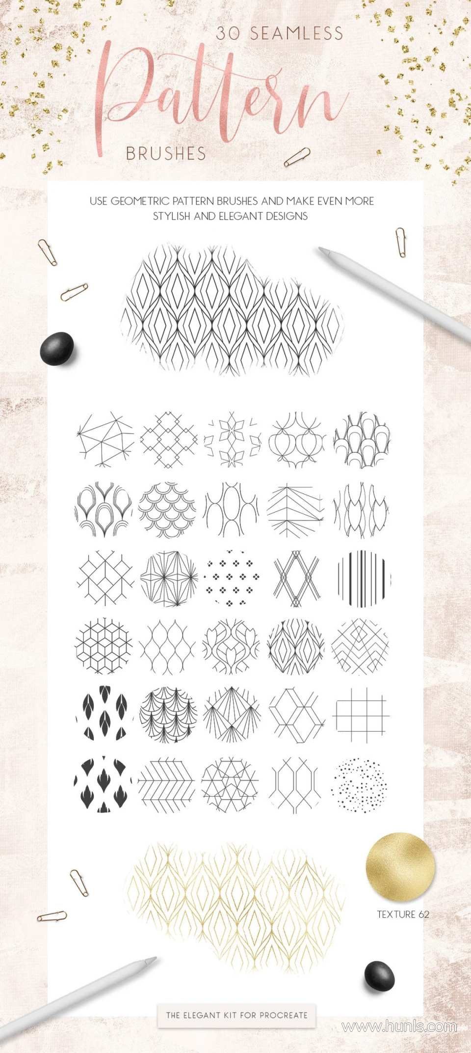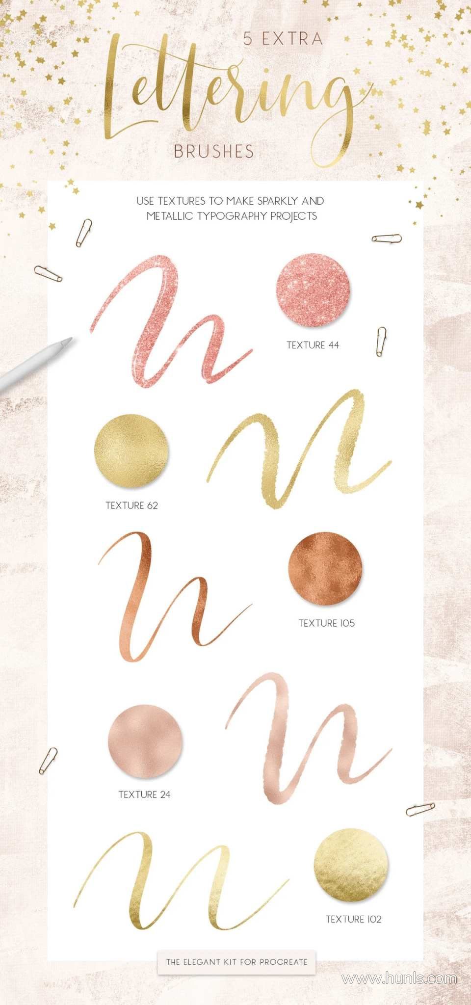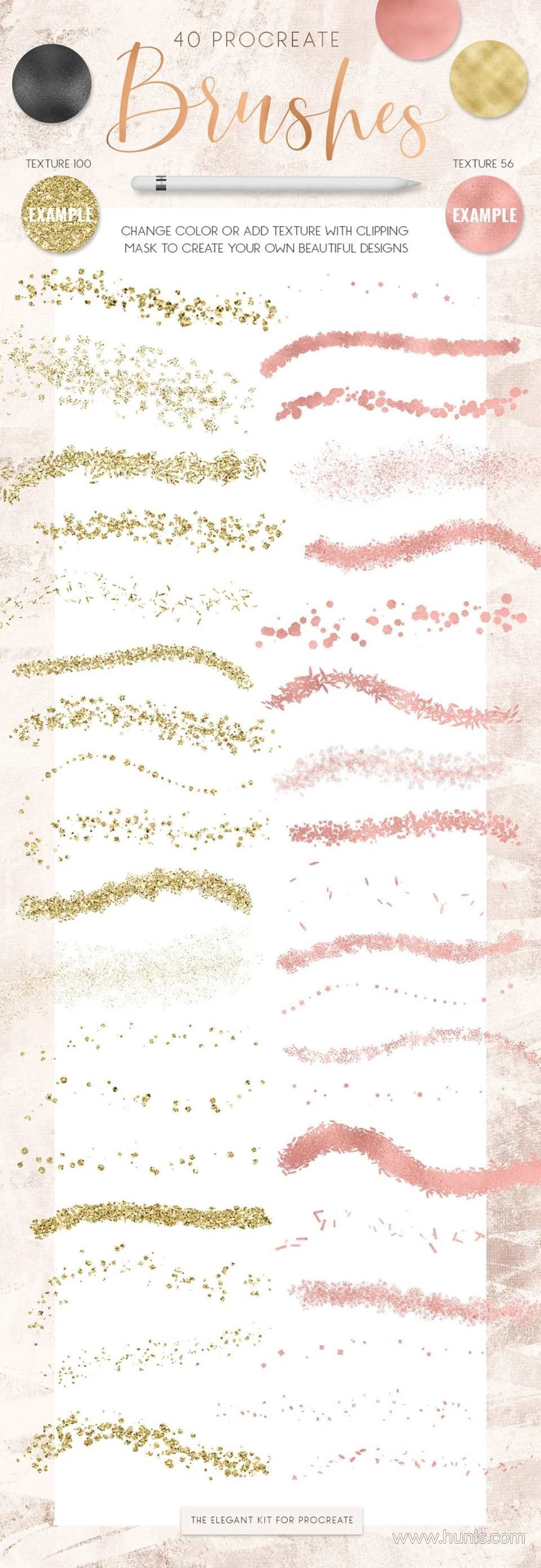 5款金箔金粉笔刷+150张金箔素材,PS跟iPad版本都有!