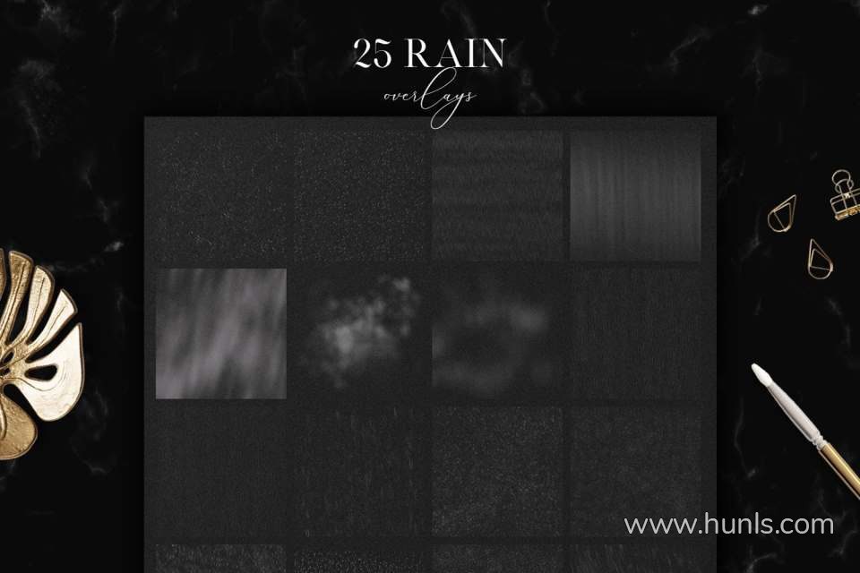 25张逼真雨水下雨雨滴效果摄影后期特效叠加合成素材 25 Rain Overlays, Realistic Rain Clipart