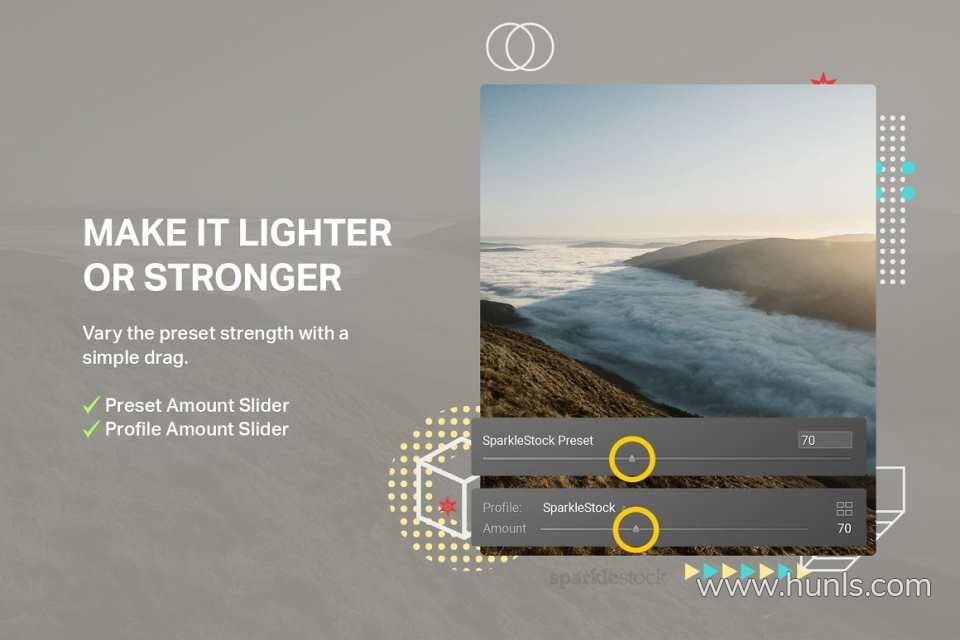 可调节强度,支持 Lightroom 的“预设数量”滑块