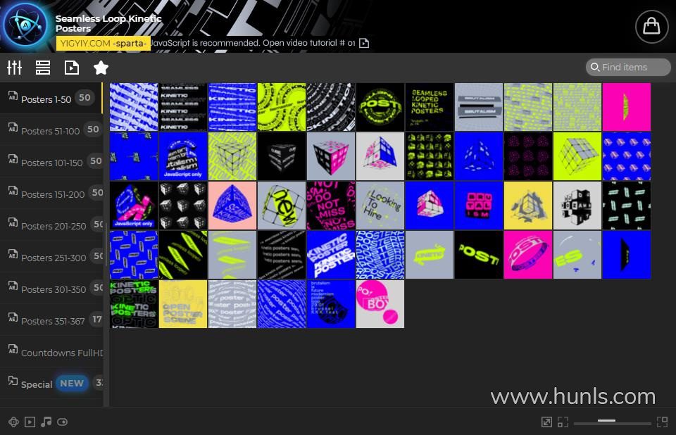 超过410个创意海报文字排版循环动画,兼容任何分辨率。通过AtomX脚本调用预设,可视化预览,直接使用于时间线,文字内容颜色字体均可修改。