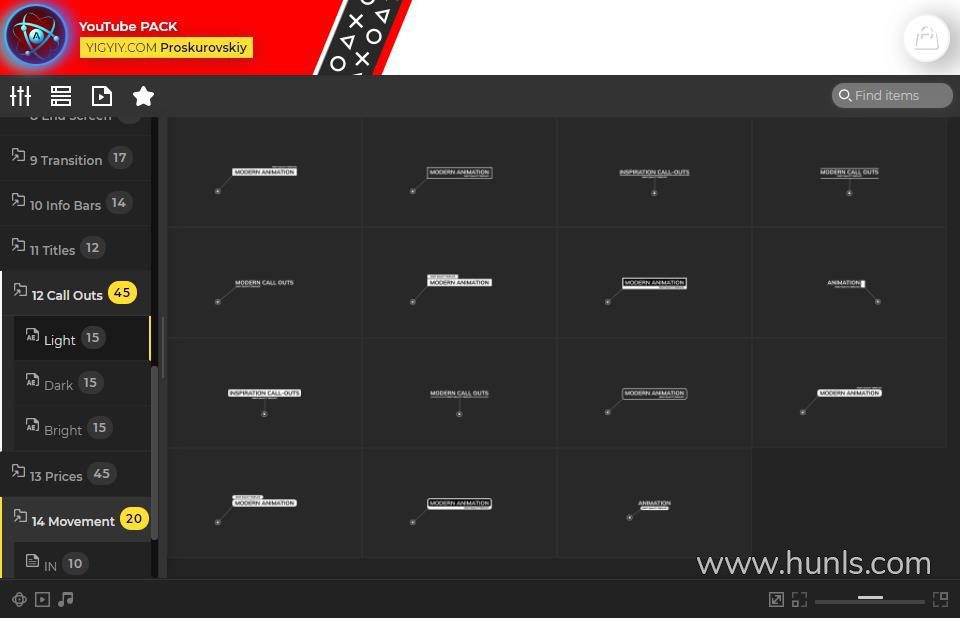 Proskurovskiy 的 YouTube Essential Library – 是一组庞大的动画元素,可帮助您使您的社交视频更具吸引力和专业性。有15个类别333个动画预设,可帮助您将视频提升到一个新的水平!