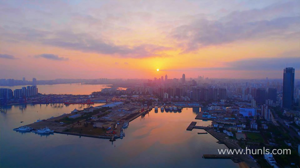 实拍视频素材-唯美航拍海南岛秀英港日出朝霞实拍视频素材