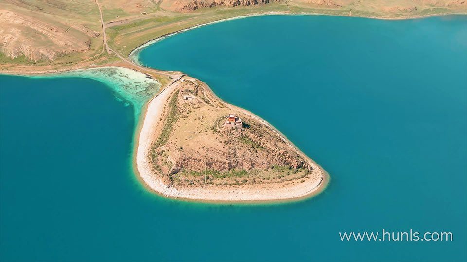 实拍视频素材-湖中心岛川藏日托寺建筑实拍视频素材