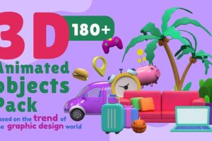 AE模板-3D Animated Objects AE模板脚本180组三维卡通图标动画AE模板下载