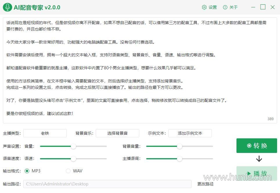 AI配音专家 2.0.0全功能版 文字转语音工具 Win中文版本下载 80多中男生女声童声方言等