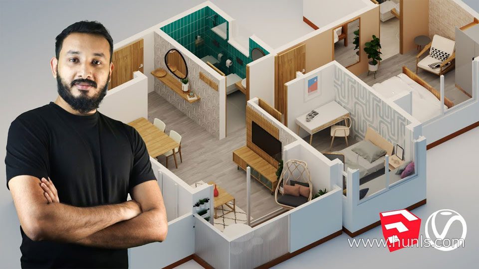 使用Sketchup、Vray和flextools创建3D平面图渲染 - 等距设计大师班