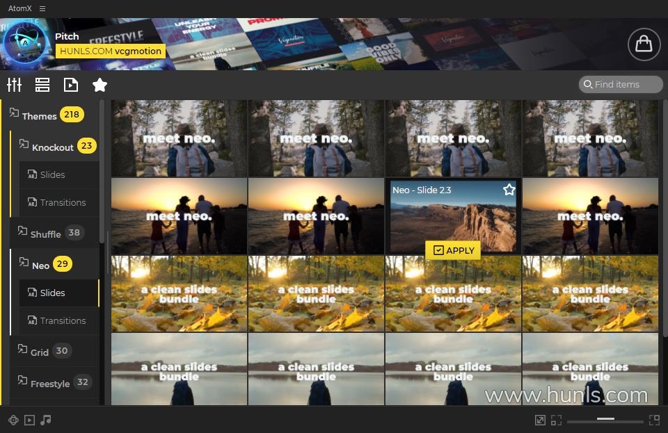 Pitch是各种幻灯片和过渡的集合,可帮助您制作很酷的宣传视频或开场白。工作流程非常简单:选择您喜欢的幻灯片,添加素材,编辑文本块,将幻灯片与过渡连接起来,添加音乐,然后就可以开始了!