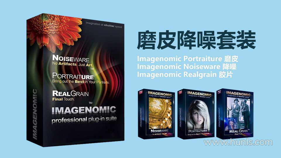 Imagenomic Professional Suite合集版 是PS的一组磨皮降噪胶片滤镜套装,这套插件包含了Noiseware、Portraiture和RealGrain三款经典的知名滤镜插件。