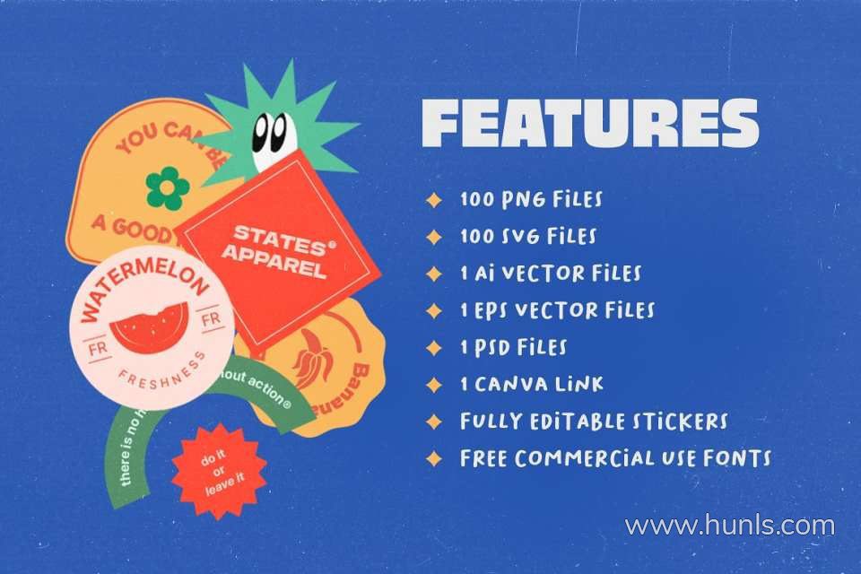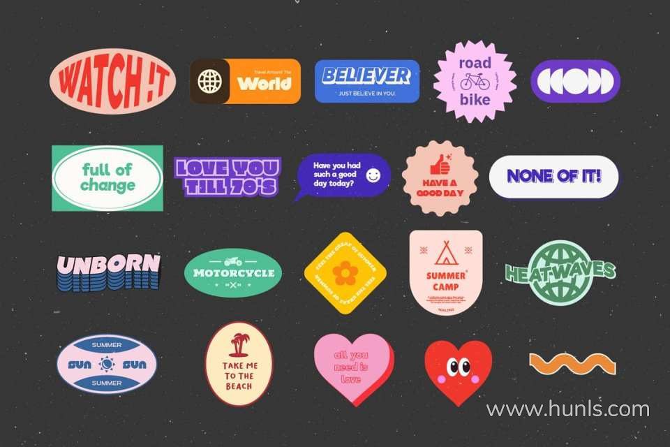这款贴纸包灵感来自复古风格,让您感受到怀旧的回忆。这个贴纸包完全有很多格式文件可以使用。不仅用于数字资产,而且我认为可以使用任何你想要的东西,比如社交媒体帖子和故事、品牌和带有贴纸的包装。