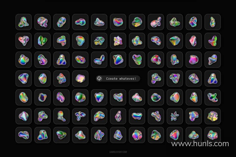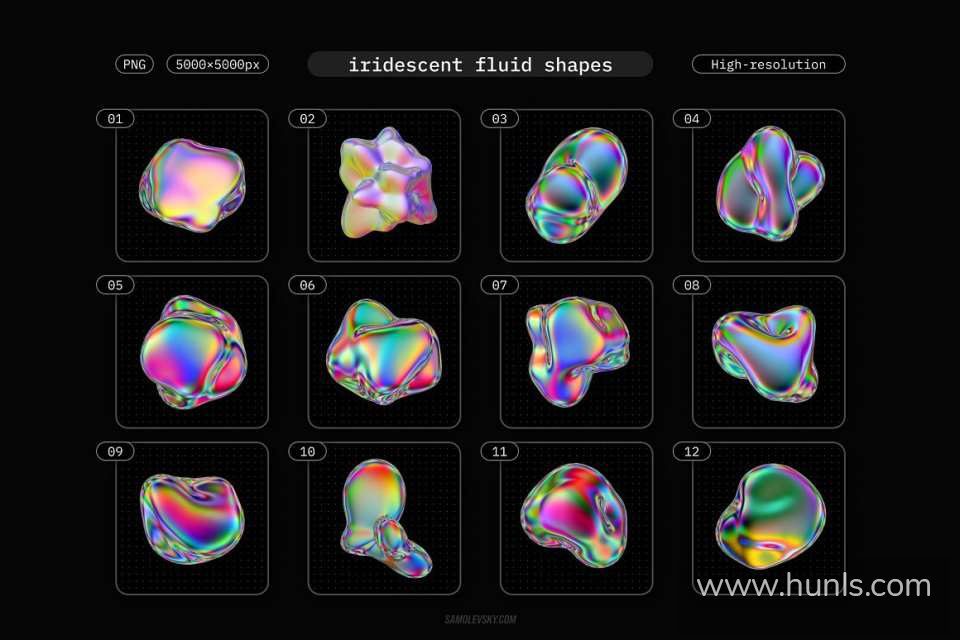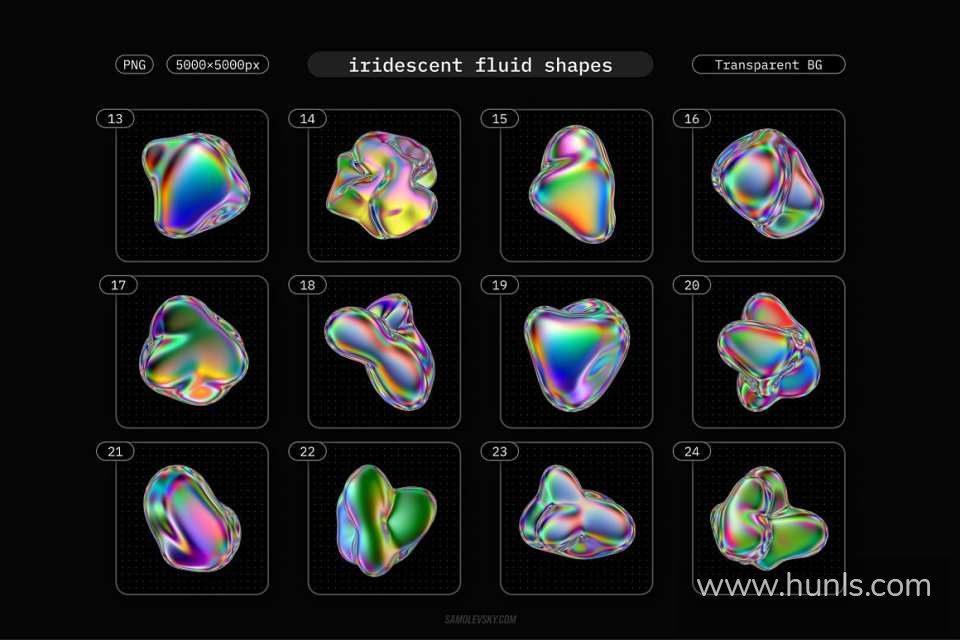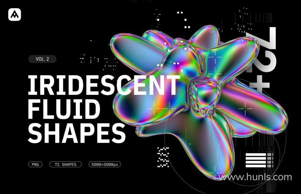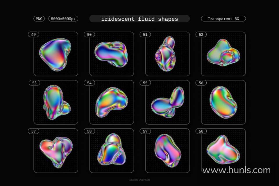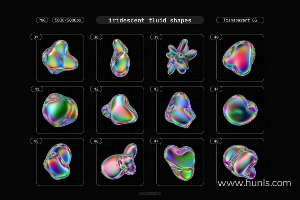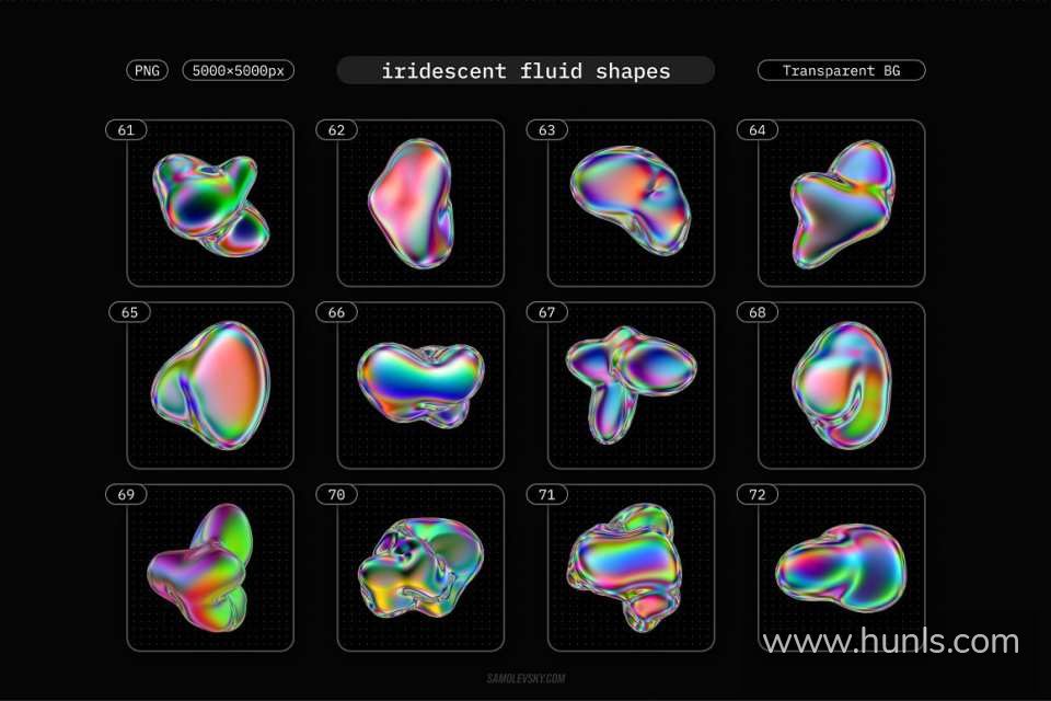 72款酸性复古全息镭射彩虹渐变纹理流体几何抽象形状PNG素材 Iridescent Fluid 3D Shapes Pack