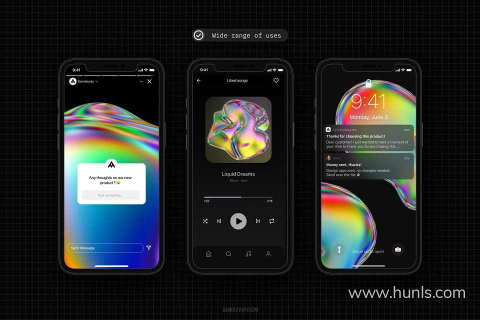 这个包可以完美地补充您的项目,无论您是创建海报设计、专辑插图、登陆页面还是品牌标识。将这些彩虹色液体形状合并到您的设计项目中就像拖放一样简单。