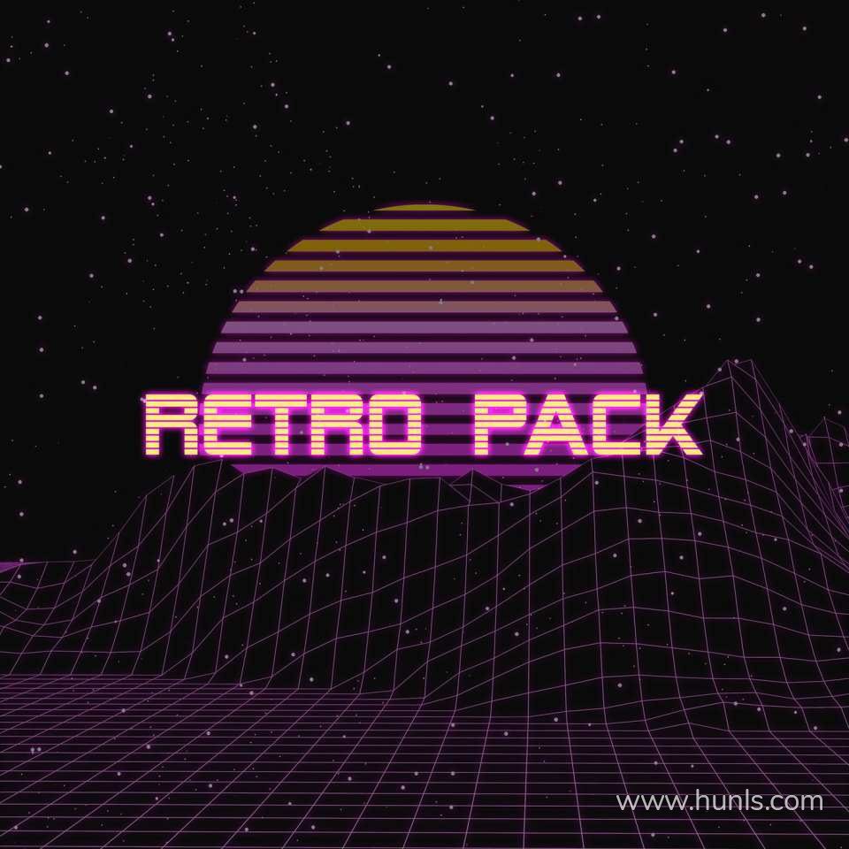 Retro Elements Pack 分为3D渐变条纹、方格图案 3D 对象、渐变复古形状、网格 3D 对象、网格背景、网格地板、网格人、虹彩大水晶、虹彩小水晶、棕榈树、模式、蒸汽波圈12个类别。