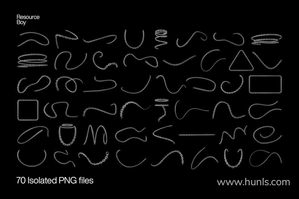 70个Y2K酸性艺术锁链粗犷链条铁链PNG设计素材 70 Chain Textures