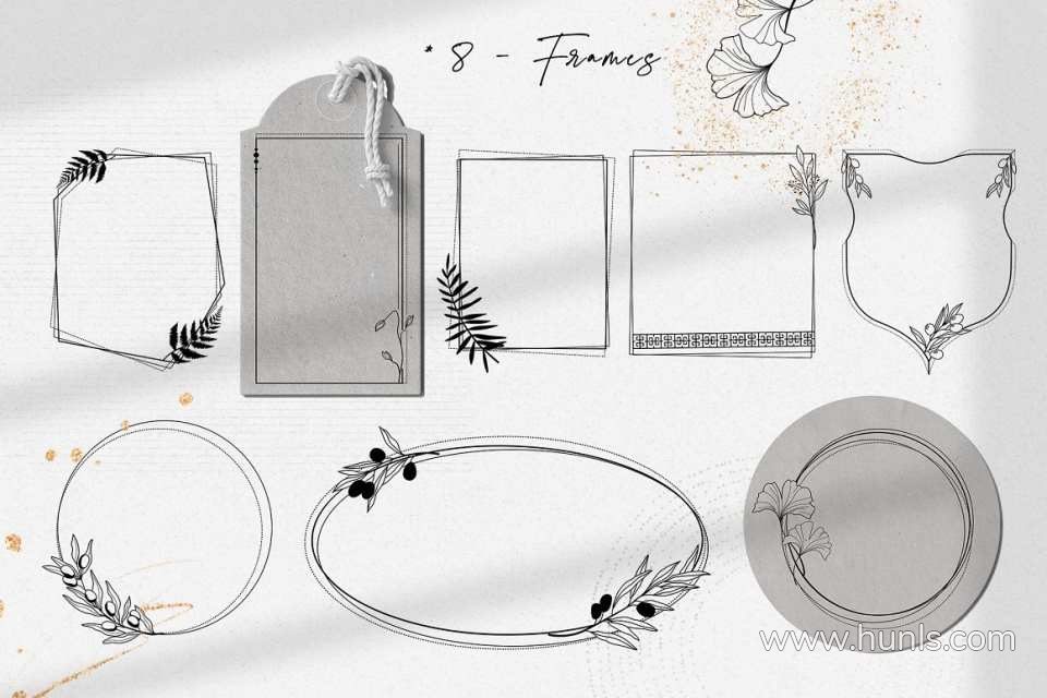 228 张高质量矢量(SVG、EPS-10 和 AI)和光栅 (PNG) 手绘图像,有 3 种颜色可供选择(黑色线条、纯黑色、赤土色;抽象的附加元素是柔和的自然色)。