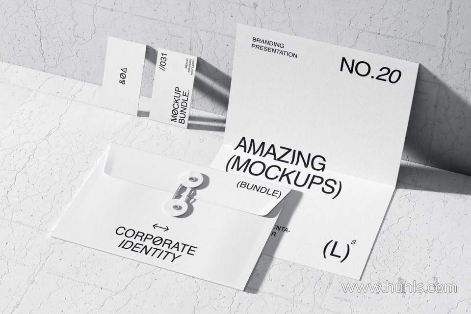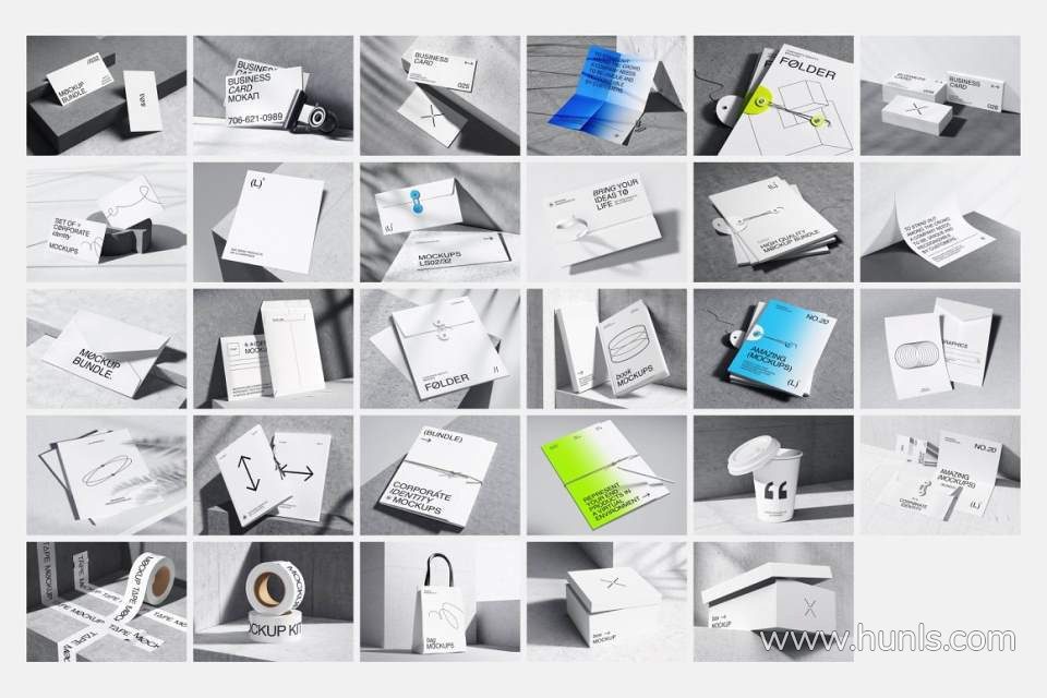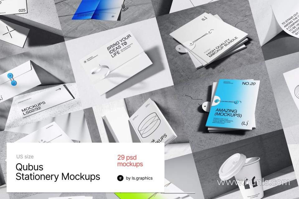 PS样机-29套名片信封纸杯信纸档案袋轻奢办公VI文具贴图PSD样机 Qubus:Brutal Stationery Mockups