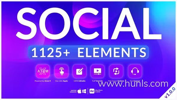 AE脚本预设-Social Pack AE脚本预设包1125组场景排版文字标题画面特效背景动画 AtomX预设包下载