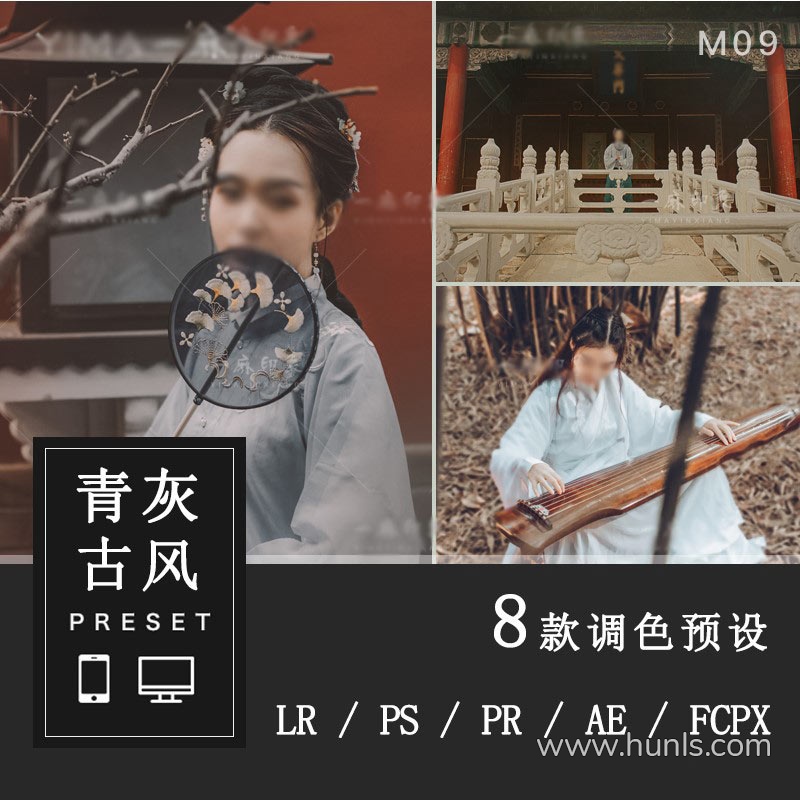 青灰古风复古汉服古装人像LR预设/FCPX/达芬奇/PR调色LUT预设