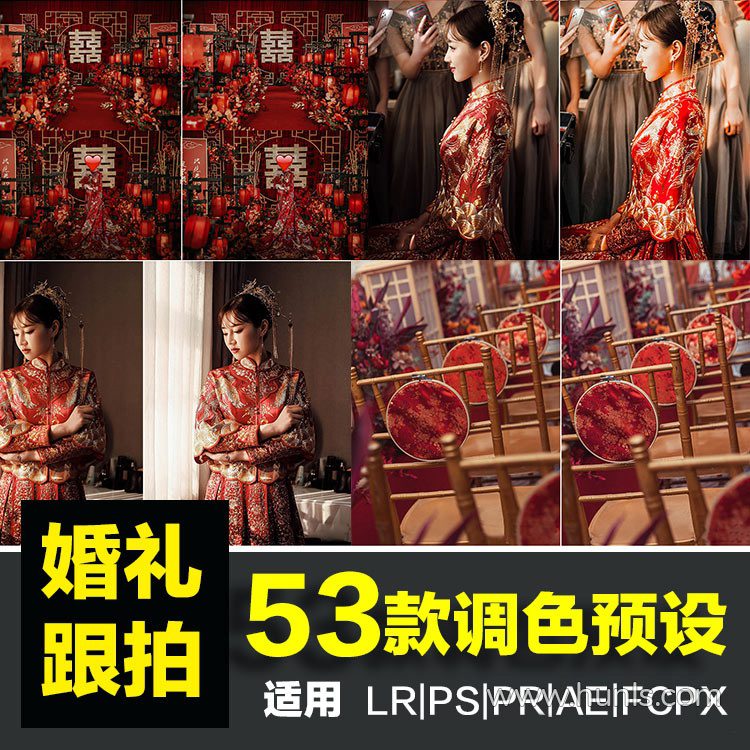 53款中国红中式婚礼跟拍人像LR调色预设手机PR达芬奇LUT预设
