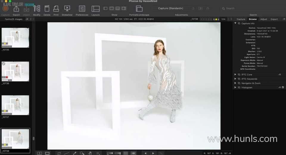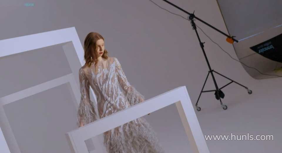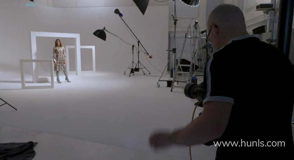 随着拍摄的进行,Karl 切换到手持拍摄并尝试使用不同的镜头。随着模特 Brit 尝试不同的服装和姿势,Karl 不断进行调整以追求完美的对比度。