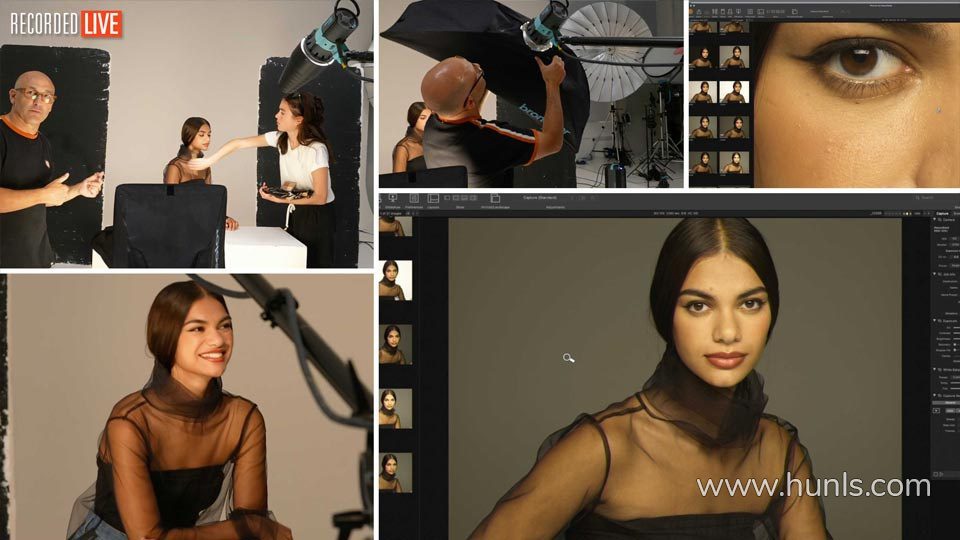 他首先从主题、灯光、修饰符、镜头、背景、后期制作等方面分析了人像摄影和美颜摄影之间的一些主要区别。在这样做的过程中,他概述了处理此类拍摄所需的一些关键设备,并解释了强光对美图的作用。