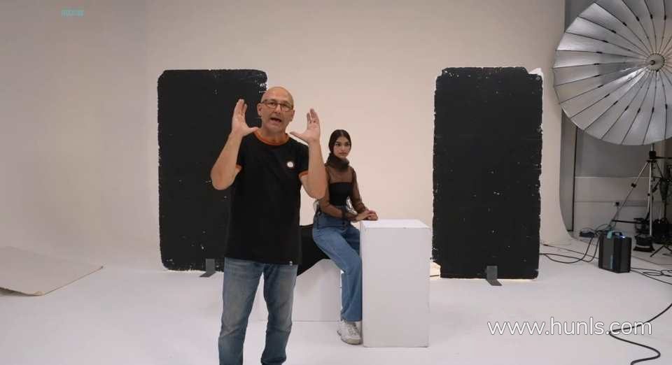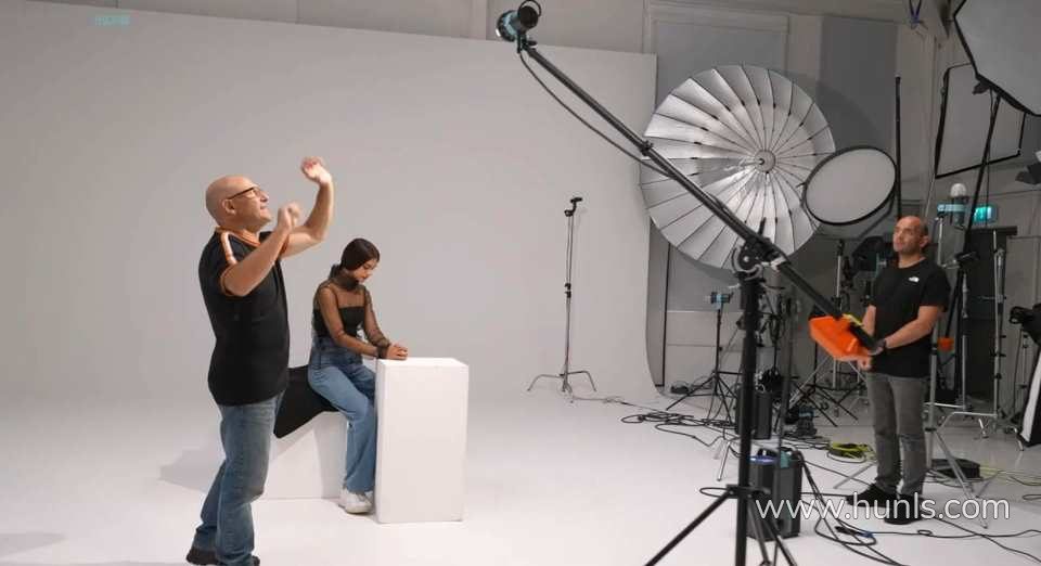 接下来,卡尔通过引入额外的灯光和聚板来处理背景。然后是时候向主光添加另一个修改器了。Karl 在工作时回答了不同成员关于一系列与拍摄相关的问题。