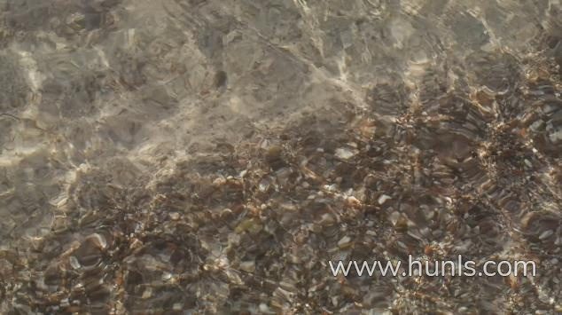视频素材-实拍晶莹剔透的水在阳光下的波动和清澈的底部小岩石视频素材下载