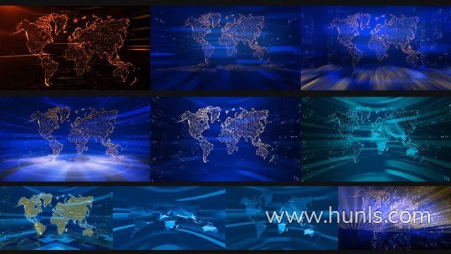 AE模板-世界地图循环数字全息图新闻广播时事纪录片社会研究视频背景AE模板下载