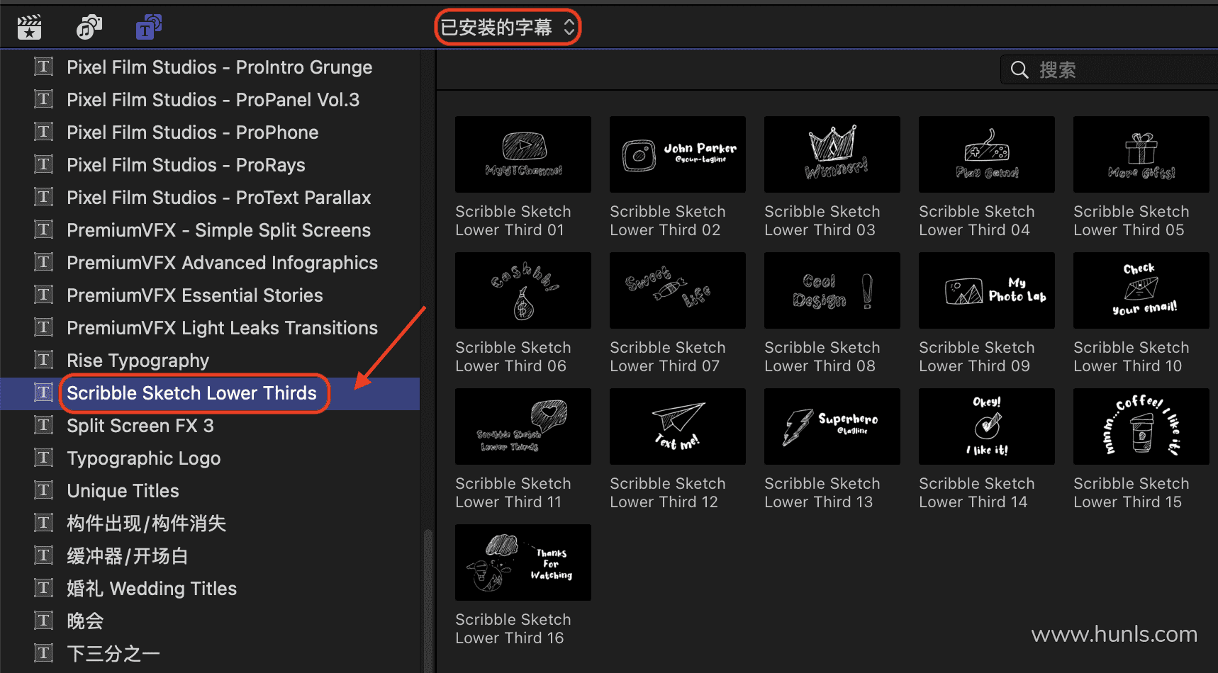 FCPX插件-16个手绘卡通素描涂鸦图形文字标题动画FCPX插件下载 Scribble Sketch Lower Thirds