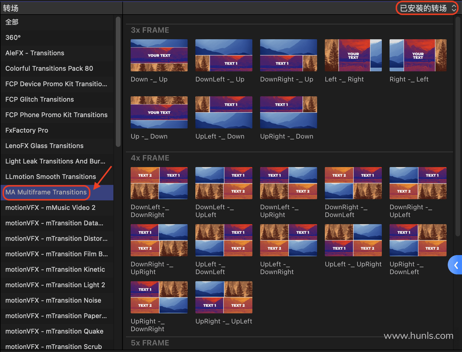 FCPX插件-32种多画面切换分屏效果转场预设FCPX插件下载 Multiframe Transitions
