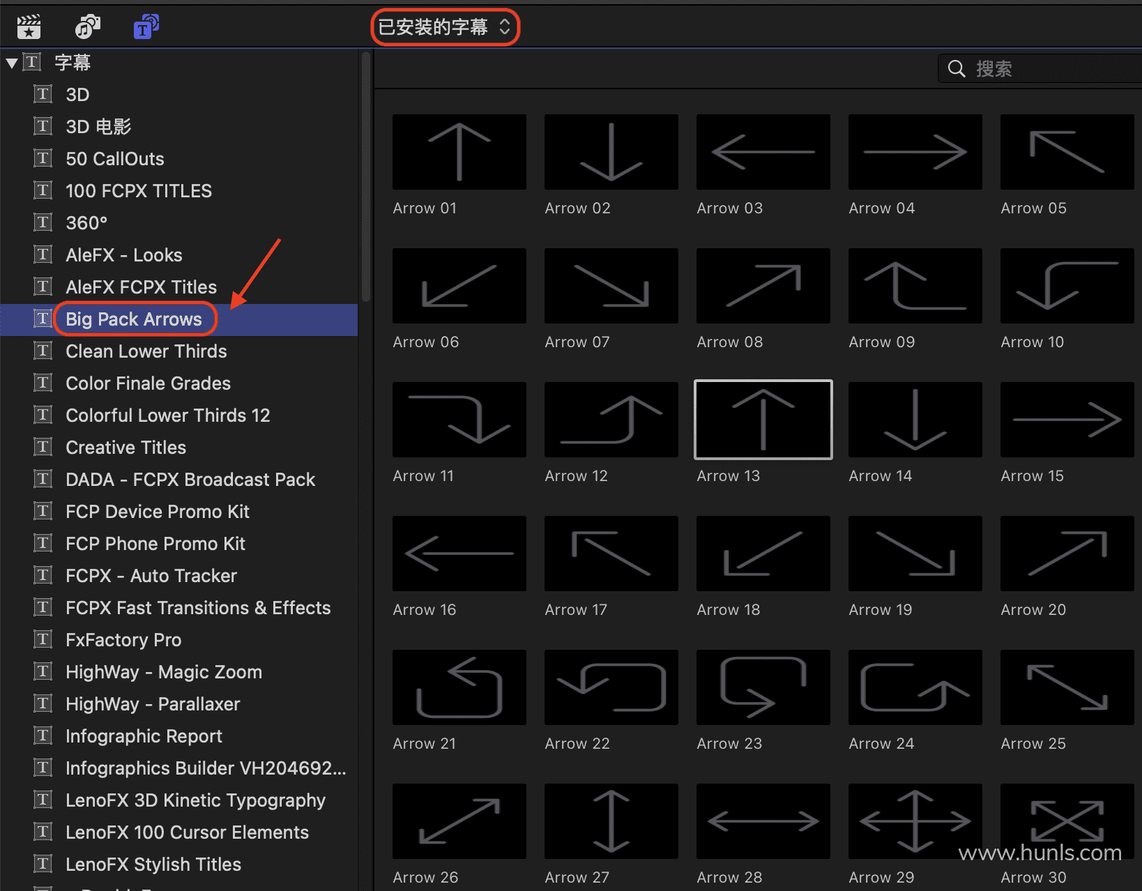 FCPX插件-180个线条箭头图形标注指示动画FCPX插件下载 Big Pack Arrows
