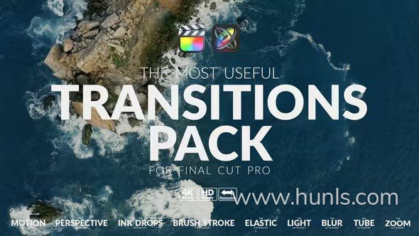 The Most Useful Transitions Pack FCPX 拥有九大类(运动,缩放,光效,弹跳,透视,模糊,笔触,水墨,Tubes)超过200个转场预设,包括音效,支持快速预览快速渲染。可调整大小,支持4K、高清、移动、正方形分辨率,包含视频教程。