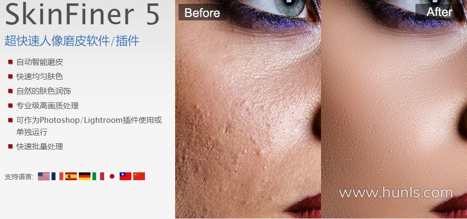 快速人像磨皮润肤修饰 SkinFiner 5.1+PS动作 SkinFiner 5.1中文版 WIN系统下载