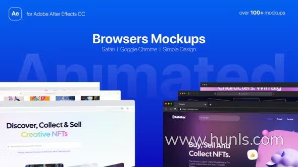 高品质网络浏览器动画Web模型网页设计展示AE模板下载 Animated Web Browsers Mockups