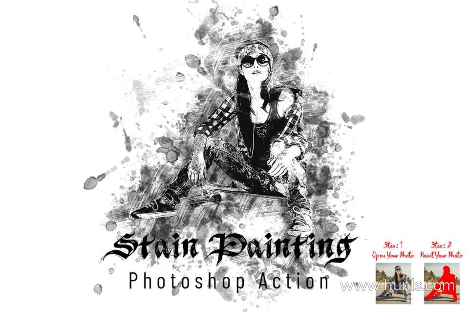水墨污点绘画Photoshop动作 Stain Painting Photoshop Action 附视频教程