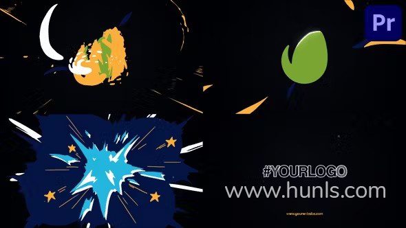 PR模板-酷酷的多色爆炸LOGO标志卡通 Multicolor Explosive Logo
