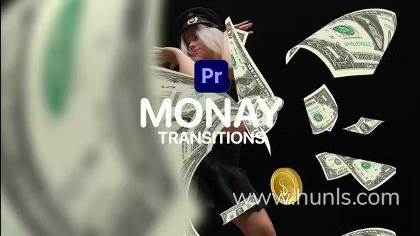 飞行美元钞票和硬币动画货币转场动态图形效果PR模板下载 Neon Light Titles Promo MOGRT